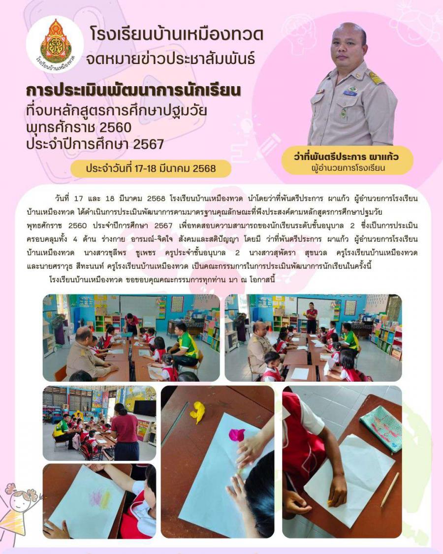 ประเมินพัฒนาการนักเรียนชั้นปฐมวัย ปีการศึกษา 2567 อนุบาล 2